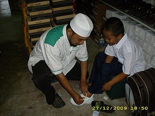 "Setiap langkah pergi ke sekolah, akan mendapat pahala" Mungkin itulah dialog yang dibualkan oleh Ustaz Faisal ketika menyarungkan kasut sekolah kepada penerima sumbangan.
